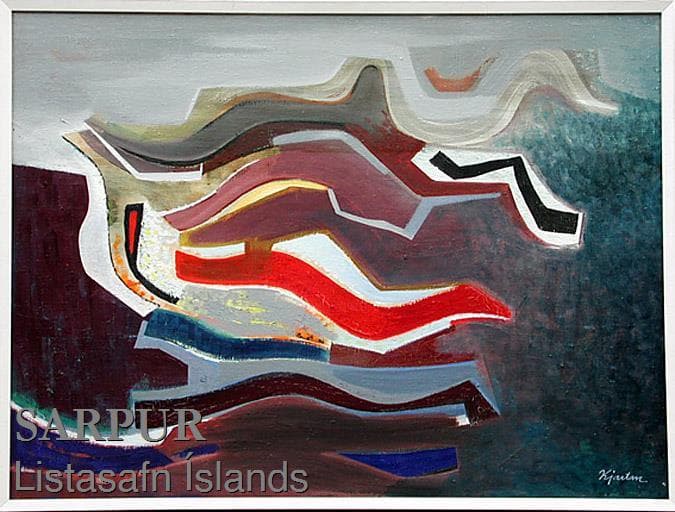 Kjartan Guðjónsson studied at the Reykjavík School of Crafts 1942–43, then pursued further study at the highly-esteemed Art Institute of Chicago. On completion of his studies Kjartan took his place among modernists in Iceland. He was involved in the foundation of the September (Septem) group, which held its first exhibition in 1947 at Listamannaskálinn in Reykjavík – a show which would have a wide impact in Iceland. In 1966 Kjartan held his first exhibition for 12 years, at Listamannaskálinn, where he showed abstract paintings that were inspired nature impressions, both conscious and unconscious. The paintings were made up of rather dark tones, enlivened by delicate line-drawing that links the artist to American expressionists such as Gorky and Bradley Walker Tomlin.