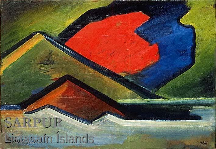 Finnur Jónsson was born in Djúpivogur in the east, and as a boy he worked with his father as a fisherman. In 1919 he qualified as a goldsmith in Reykjavík, and that same year he went to Copenhagen and started art training in the private school of Olof Rude. He then went to Germany: first to Berlin where he studied at the private school of Carl Hofer, and then at the Dresden Academy of Fine Arts, where he drew under the tutelage of Oskar Kokoschka (1886–1980), and also studied at Der Weg, Schule für Neue Kunst (The Direction: School of New Art) 1922–1925. During his time in Germany Finnur was deeply influenced by German Expressionism, Cubism and Constructivism, and he did experiments along those lines. Finnur’s black-and-white tusch works are in keeping with what was happening in Germany at the time. But his avant-garde art works were met with a stony reception back home in Iceland when he showed them at Café Rosenberg, along with other colourful figurative paintings. Finnur remained faithful to his expressionistic imagery and conventional subjects after he returned to Iceland, where his predominant theme was the relationship between Icelandic farmers and fishermen and Icelandic nature.