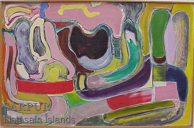Svavar Guðnason grew up in the fishing town of Höfn in Hornafjörður in the southeast, where the quality of light is extraordinary due to reflection from the ocean and the glaciers, and no doubt that contributed to his heightened sense of colour. Though Svavar enrolled at the Royal Danish Academy of Fine Arts in Copenhagen in 1935, he was a largely self-taught artist, who pursued abstract art and spontaneous expression, but never turned his back on nature, which he saw as a major influence on his art. In 1945 Svavar held a major solo show in Iceland, which became a landmark in Icelandic art, paving the way for abstract art. In the 1940s Svavar was active on the Danish art scene, where he found much in common with leading artists who sought inspiration in children’s and “primitive” art, as well as in their own cultural heritage; some of them went on to form the core of the Cobra group. The powerful emotional expression seen in Svavar’s art from 1943–49 establishes a special place for him in Icelandic and international art. The works emerged from the artist’s mind as if by magic, as he stood facing the empty canvas.