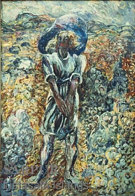 Túlkun Kjarvals náði ekki einungis til áþreifanlegrar jarðarinnar, landsins í allri sinni dýrð, heldur einnig til veðursins. Átti hann það til að bregða sér út með trönurnar til að fanga árstíðirnar með sínum veðrum og vindum, bæði dag sem nótt. Eitt er víst samtal hans við náttúruna var magnað. Vindstroka kann að vekja tilfinningar, kuldahroll eða unaðsstund sem hinn blíðasti blær og allt þar á milli. Í verkum Kjarvals sjáum við stundum verur sem eru táknmyndir hinnar lifandi náttúru, bergbúans eða vindsins. Hér kemur vindstrokan sem ung stúlka í bláum kjól umvafin gulbrúnum mosa og blágrænu hraunlandslagi. Með því að tileinka sér helstu stíla og stefnur í málaralist 20. aldar má segja að Kjarval hafi tekist að bræða saman sinn eigin stíl með þrotlausum rannsóknum. Vinna hans við trönurnar átti hug hans allan og það var honum meðvituð köllun að túlka íslenska náttúru í öllum sínum fjölbreytileika og ljósbrigðum. RP